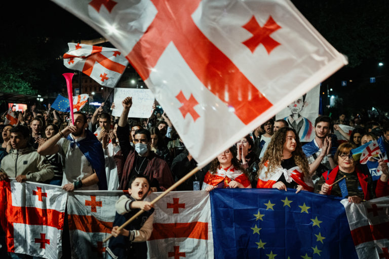 Tbilisi, the city with vast experience in rallies, witnessed an unprecedentedly huge demonstration on April 28th, with tens of thousands of people marching on Rustaveli Avenue chanting “Yes, to Europe! No, to Russia!”. The march on the warm Sunday evening of April 28th, was only one out of permanent protests going on for more than a month in Tbilisi.