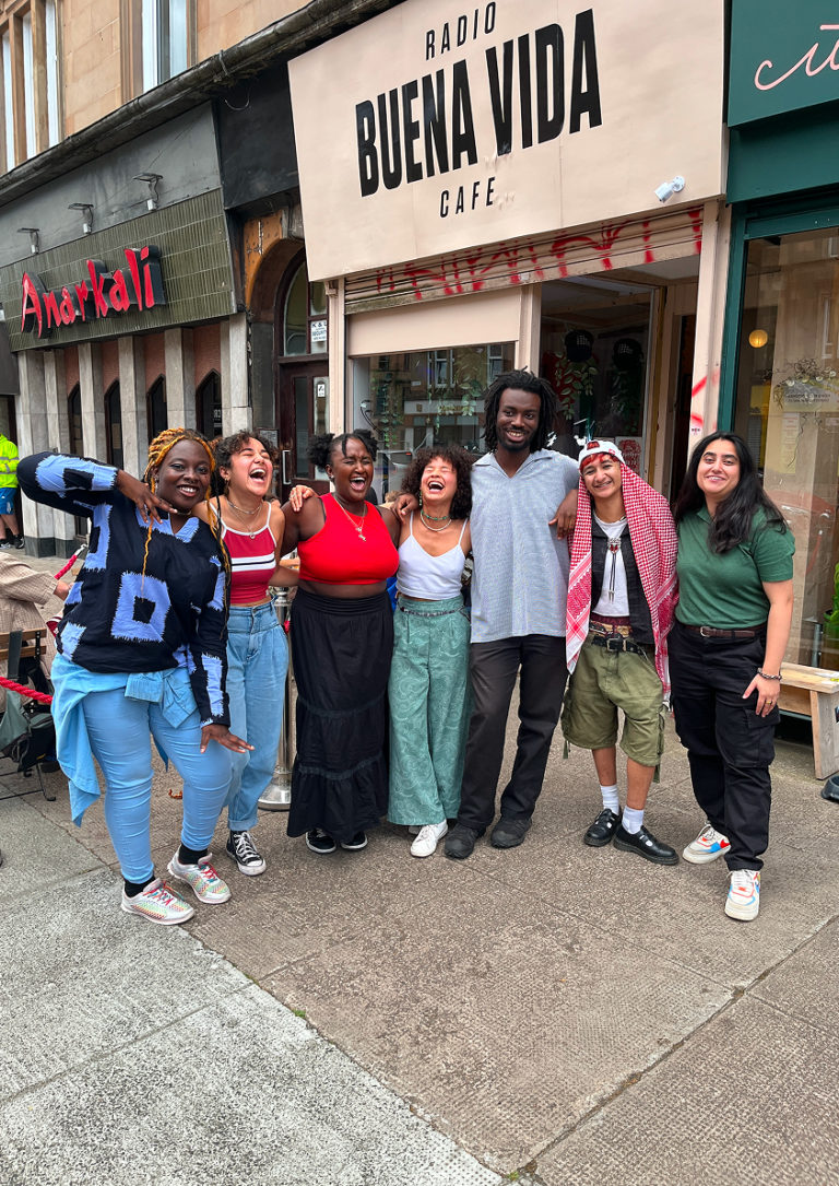 Across Glasgow and London, Europe, and the world, community radio stations are rebroadcasting the meaning of solidarity—not only as a slogan, but as an act of resistance. In the wake of the genocide in Palestine, stations like Radio Buena Vida and Sister Midnight FM are using airwaves to amplify voices silenced elsewhere, countering censorship with compassion and collective action. Through music, dialogue, and live storytelling, they remind listeners that resistance is fought on the streets and beyond in keeping Palestinian voices spoken, sung, and transmitted, one broadcast at a time.